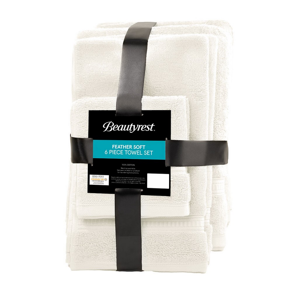 | Beautyrest 6-Piece 2 Bath Towels: 30"W x 54"L (2) 2 Hand Towels: 16"W x 28"L (2) 2 Wash Towels: 13"W x 13"L (2) 100% Cotton Transitional Style Includes 6 Piece(s) Wash before first use. Machine wash cold on gentle cycle with like colors. Only use non-chlorine bleach when needed. Avoid contact with products containing benzoyl peroxide. Do not wash with sharp items that may pull the towel fibers, such as zippers Our Beautyrest Plume 100% Cotton Feather Touch Towel 6 Piece Set offers a perfectly luxurious soft addition to your bathroom. Each towel is made from 750gsm premium quality cotton for a cashmere like hand feel that is also absorbent and durable; as the PVA free 3PLY zero twist like construction provides a long-lasting softness while also making this towel set economical and eco-friendly. These towels are Made in Green by OEKO-TEX, meaning it does not contain any harmful substances or chemicals to ensure quality comfort and wellness. Each towel is treated with intellifresh, powered by silvadur antimicrobial technology, which inhibits odor causing bacteria for enhanced odor control, protects fibers and fabrics, and provides built-in freshness, keeping linen newer, longer. Active for multiple washes, this treatment delivers long-lasting durable odor protection performance, while safeguarding our resources for the best in wellness and well-being. |