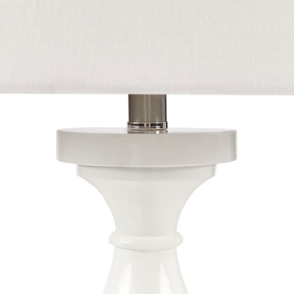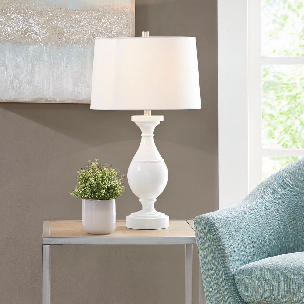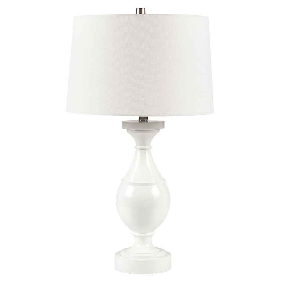 | Hampton Hill See below Overall Dimension: 15.75" Dia x 26.25"H Body Size: 6" Dia x 15.424"H Shade Size: 14.25" Dia x 15.75" Dia x 10"H Socket Size: 1.5" Dia x 2.5"H Cord Length: 60" 75% resin, 20% fabric, 5% iron Base: Resin Shade Fabric: 65% polyester, 35% cotton Modern/Contemporary Style Includes 1 Piece(s) Spot clean only handle with care Brighten your home with elegance of the Hampton Hill Blythe Resin Table Lamp. This table lamp is made from durable resin and features a graceful curved silhouette with a glossy white finish to create a beautiful transitional look. The white tapered drum shade complements the stunning design and softly filters the light, for a soft warm glow. Perfect for your living room or bedroom, this resin table lamp offers a sophisticated element to your home decor. 1 Type A bulb is needed (not included), wattage 60W incandescent/13W CFL/9W LED. |