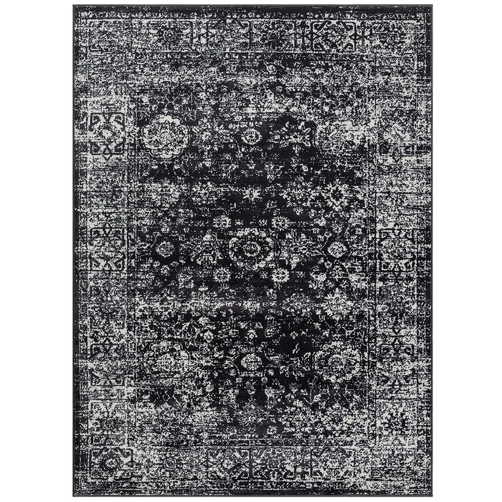 Chadwick Distressed Vintage Persian Woven Area Rug Black Cream
