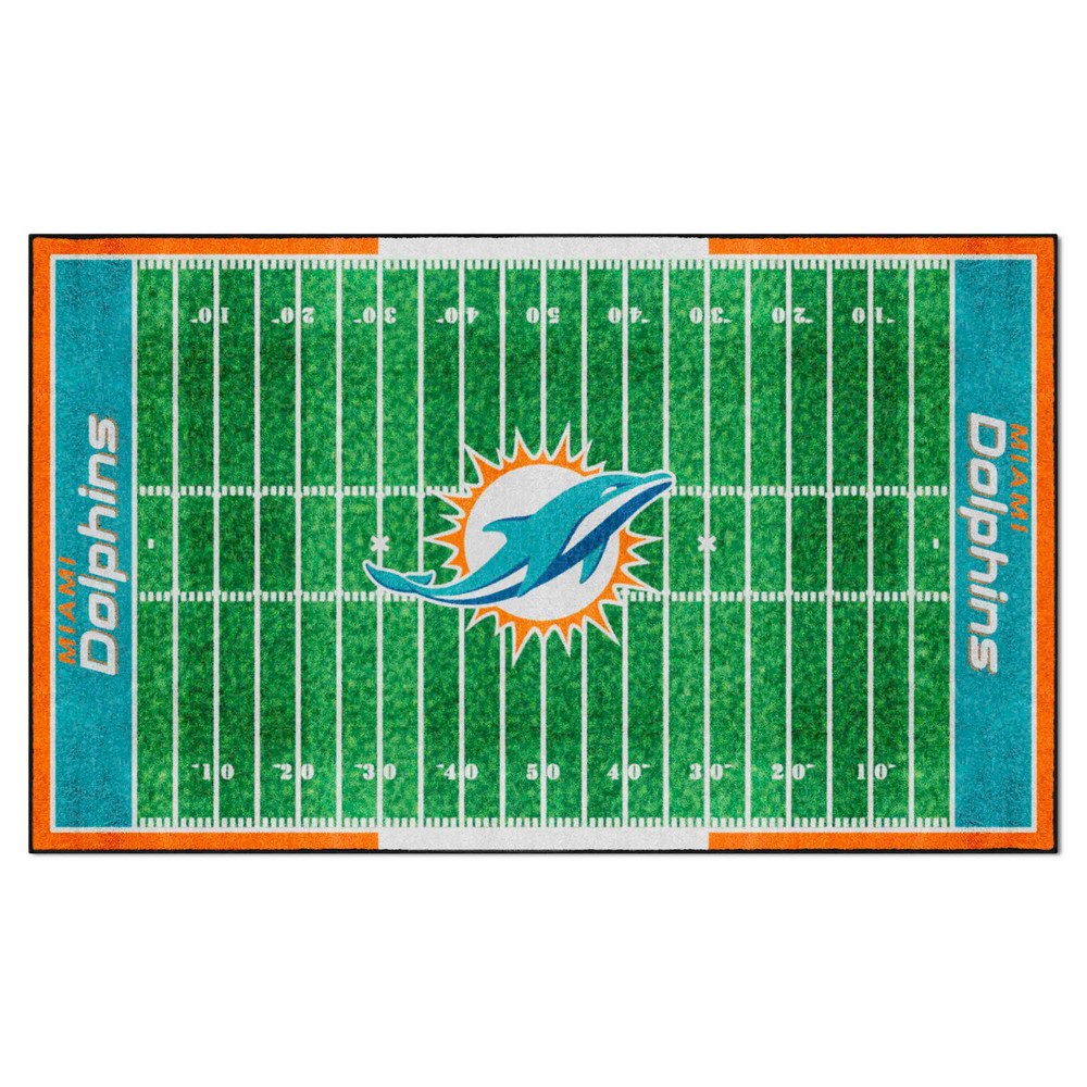 | Miami Dolphins 6 ft. x 10 ft. Plush Area Rug 23.5 oz., 100% Nylon Face Latex backing for a durable and longer-lasting product Machine made in the USA Non-skid backing to ensure stability Vacuum regularly and spot clean Chromojet-printed in true team colors NFL - Miami Dolphins in Florida NFL National Football League |