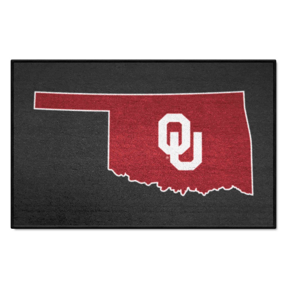 | Oklahoma Sooners Starter Mat Accent Rug - 19in. x 30in. 9 Ounce, 100 % Nylon Face Recycled vinyl backing for a durable and longer-lasting product Machine made and tufted in the USA Non-skid backing with serged borders for added durability Machine washable; vacuum regularly and spot clean for any easy and quick clean Officially licensed and chromojet-printed in true team colors for vibrant, lasting color University of Oklahoma in Oklahoma |