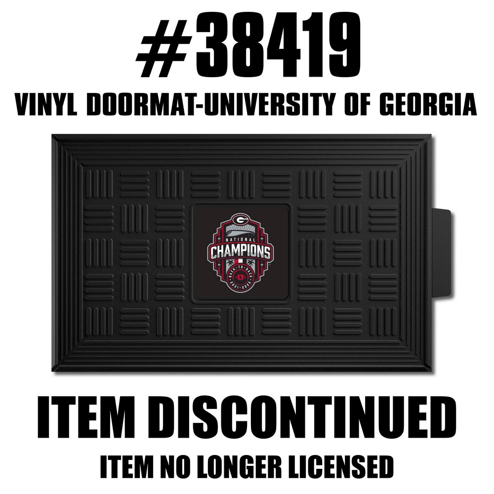 | Georgia 2022-23 National Champions Medallion Door Mat 3-D logo molded in true team colors Made of 100% vinyl for a durable and long-lasting door mat Durable weather-resistant door mat withstands seasonal change, use outside all year long Cleans your shoes as the ridges scrape the dirt off and the deep reservoirs hold and drain water through its corner slots Designed for both indoor and outdoor use Clean with a garden hose for easy maintenance University of Georgia in Georgia WARNING: This product can expose you to chemicals including, DINP, which is known to the State of California to casue cancer. For more information, go to www.P65Warnings.ca.gov |