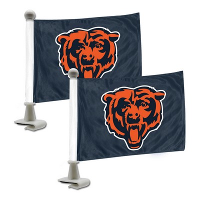 | Chicago Bears Ambassador Car Flags - 2 Pack Mini Auto Flags, 4in X 6in Made with heavy duty fabric for durability Easily and securely clips on to the hood or the trunk Low profile will not obstruct vision while driving Officially Licensed True Team Colors Flag approximately 4" x 6" NFL - Chicago Bears in Illinois NFL National Football League |