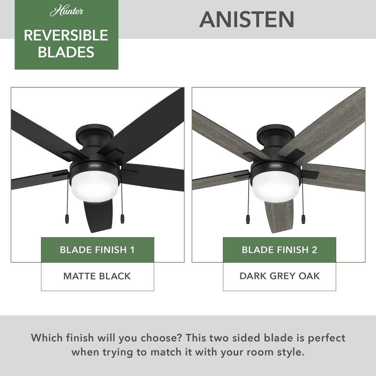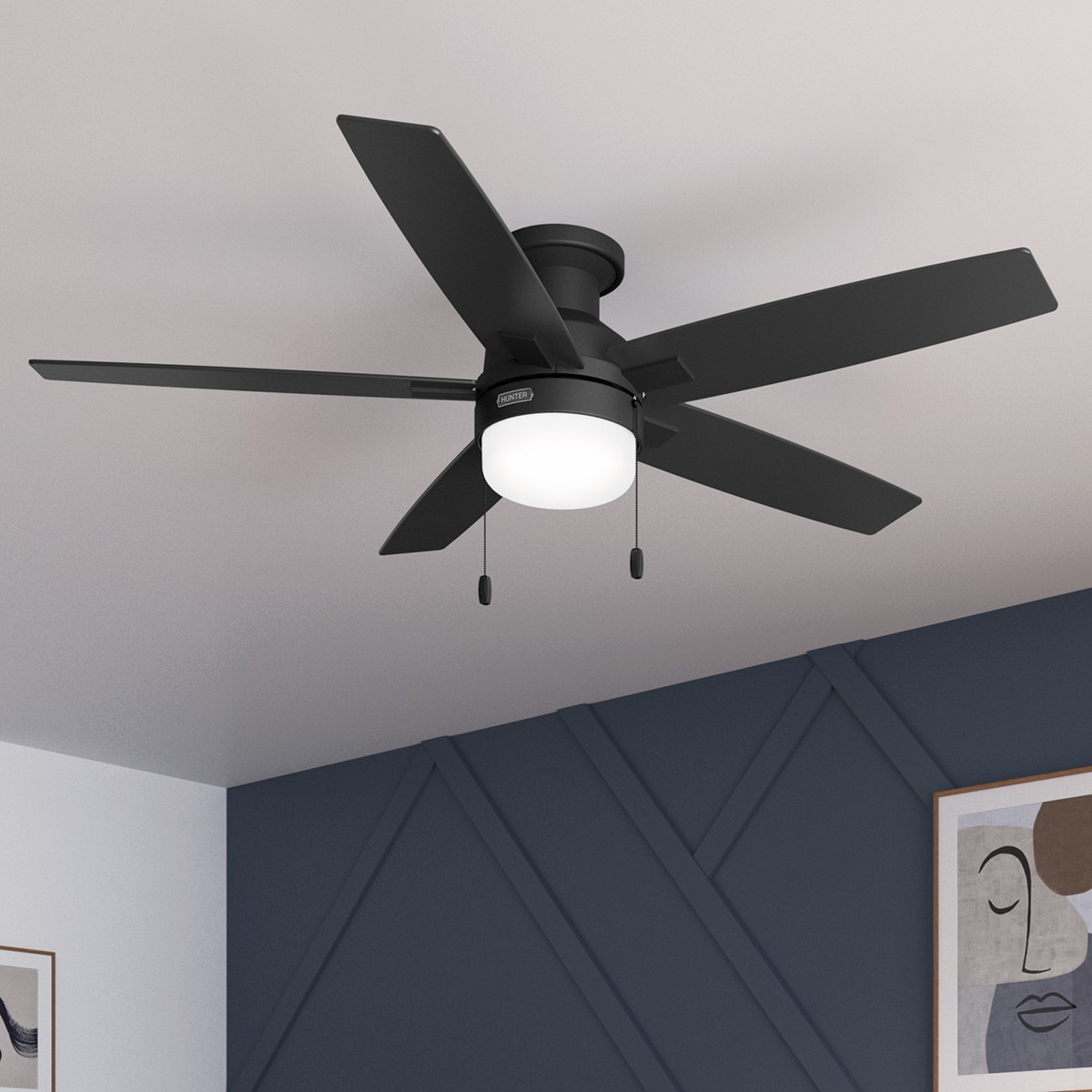 Hunter 52 inch Anisten Matte Black Low Profile Ceiling Fan with LED Light Kit and Pull Chain