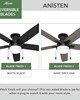 | Experience the perfect blend of style and functionality with the Anisten Ceiling Fan. Featuring a casual modern design this fan is ideal for contemporary homes. The WhisperWind® reversible motor ensures whisper-quiet operation providing optimal performance in both summer and winter. Designed for rooms with low ceilings the low-profile housing fits flush to the ceiling offering a seamless look. Upgrade your home comfort with the Anisten Ceiling Fan where elegance meets efficiency. Modern 5 Matte Black / Dark Gray Oak reversible blades included Light kit features White Lens A15 LED Bulb | 600lm (Non-Dim) | Longstar | 7W | KA305-01 Includes 2 7W LED Bulbs. 3 speeds controlled by pull chain. Specially designed low-profile housing fits flush to the ceiling making it ideal for use in rooms with low ceilings less than 9' " Limited Lifetime Motor Warranty Reversible 3-speed WhisperWind® motor delivers ultra-powerful air movement with whisper-quiet performance so you get the cooling power you want without the noise you don't® Overall Height: 7.94 in Airflow: 3003 CFM Electricity Use: 41 WATTS Airflow Efficeincy: 53 CFM/WATT |