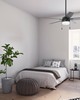 | The Anisten ceiling fan brings a contemporary modern touch to your bedroom or living room. It features clean lines and neutral finishes making it an ideal complement to your modern decor. With dimmable LED bulbs and a durable plastic light cover it ensures that it's practical as well as pretty. Our WhisperWind® technology makes it easy for you to install it and forget it's there since its runs so quietly. The affordable price of the Anisten makes it a good buy for any budget. Modern 5 Matte Black / Dark Gray Oak reversible blades included Light kit features White Lens A15 LED Bulb | 600lm DOE Spec | Long Star | 6.5 W | K7795-01 Includes 2 7W LED Bulbs. You will love the dimmable light feature. 3 speeds controlled by pull chain. Installer's Choice® three-position mounting system allows for standard low or angled mounting Includes 3'' downrod to ensure proper distance from the ceiling and optimize air movement" Limited Lifetime Motor Warranty Reversible 3-speed WhisperWind® motor delivers ultra-powerful air movement with whisper-quiet performance so you get the cooling power you want without the noise you don't® Overall Height: 8.43 in Airflow: 3447 CFM Electricity Use: 42 WATTS Airflow Efficeincy: 58 CFM/WATT |