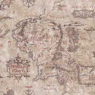 Lord of the Rings Parchment Middle Earth Map Peel & Stick Wallpaper
