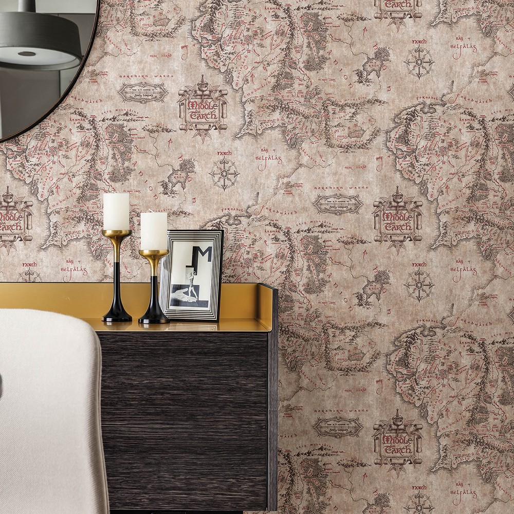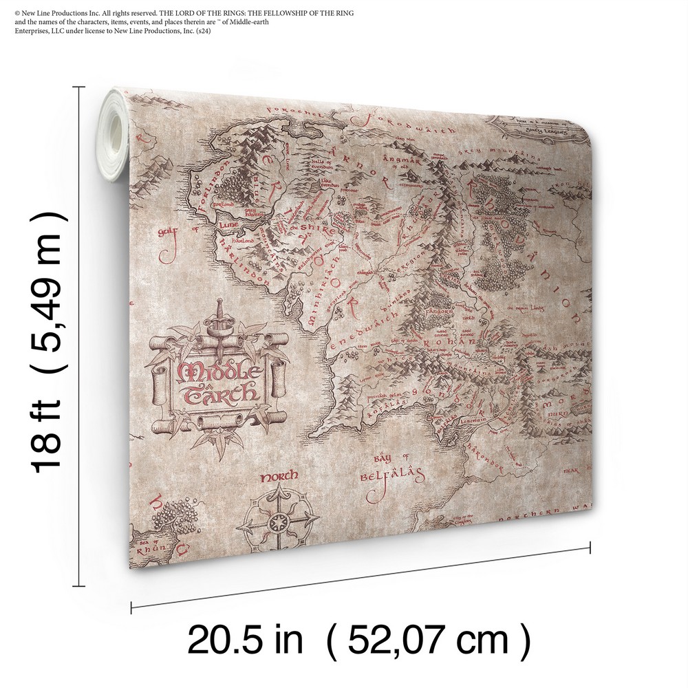 | Bring the enduring adventure of Lord of the Rings to your room in just Peel, Stick…Done!® This design features a map of Middle Earth on a distressed parchment backdrop, transforming any room into a realm of fantasy with ease. Lord of the Rings Parchment Middle Earth Map Peel & Stick Wallpaper comes on one roll that measures 20.5 inches wide by 18 feet long. RoomMates Peel & Stick Color Family: Browns Vintage Graphics Effect: |