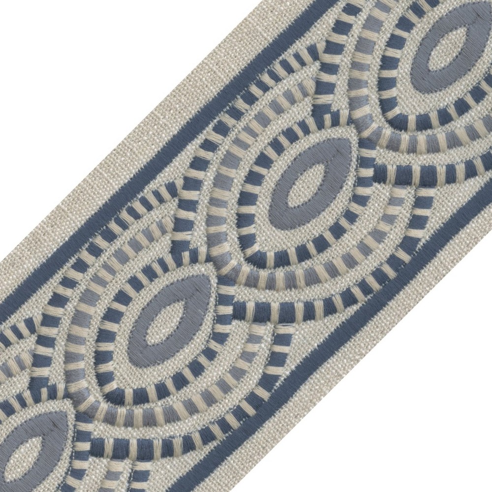 | Bring modern texture to your décor with this wide embroidered fabric tape, showcasing a geometric circular pattern accented by soft ovals. Made from a polyester-cotton blend, it features a rustic woven finish that pairs beautifully with both contemporary and transitional styles. Use it to trim pillows, furniture, shades, and draperies for a clean, tailored look with subtle visual interest. |