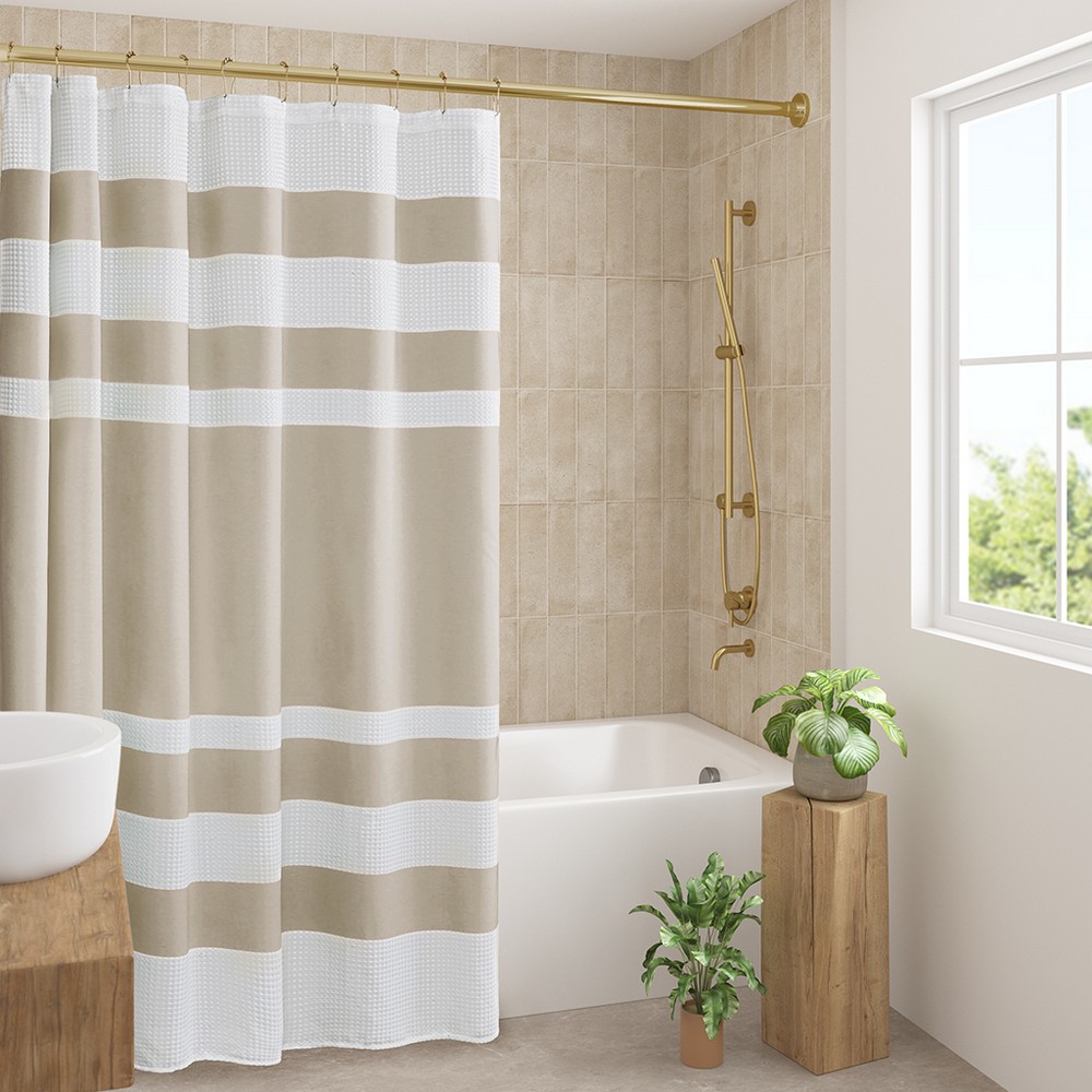 Spa Waffle Taupe Shower Curtain with 3M Treatment