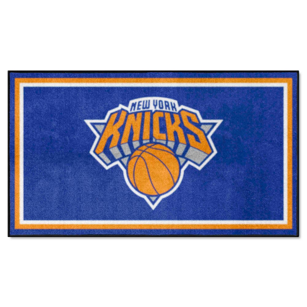 | New York Knicks 3ft. x 5ft. Plush Area Rug 23.5 oz., 100% Nylon Face Latex backing for a durable and longer-lasting product Machine made in the USA Non-skid backing to ensure stability Vacuum regularly and spot clean Chromojet-printed in true team colors NBA - New York Knicks in New York NBA National Basketball Association |