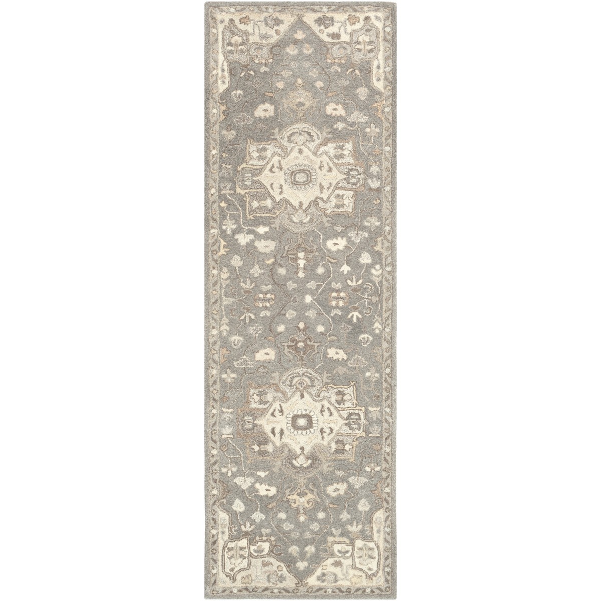 | Traditional Style Rugs Shape: Runner Hand Tufted Backing: Canvas Medium Pile Printed The Caesar Collection showcases traditional inspired designs that exemplify timeless styles of elegance comfort and sophistication. With their hand tufted construction these rugs offer an affordable alternative to other handmade constructions while preserving the same natural demeanor and charm. Made with Wool in India and has Medium Pile. Spot Clean Only One Year Limited Warranty. |
