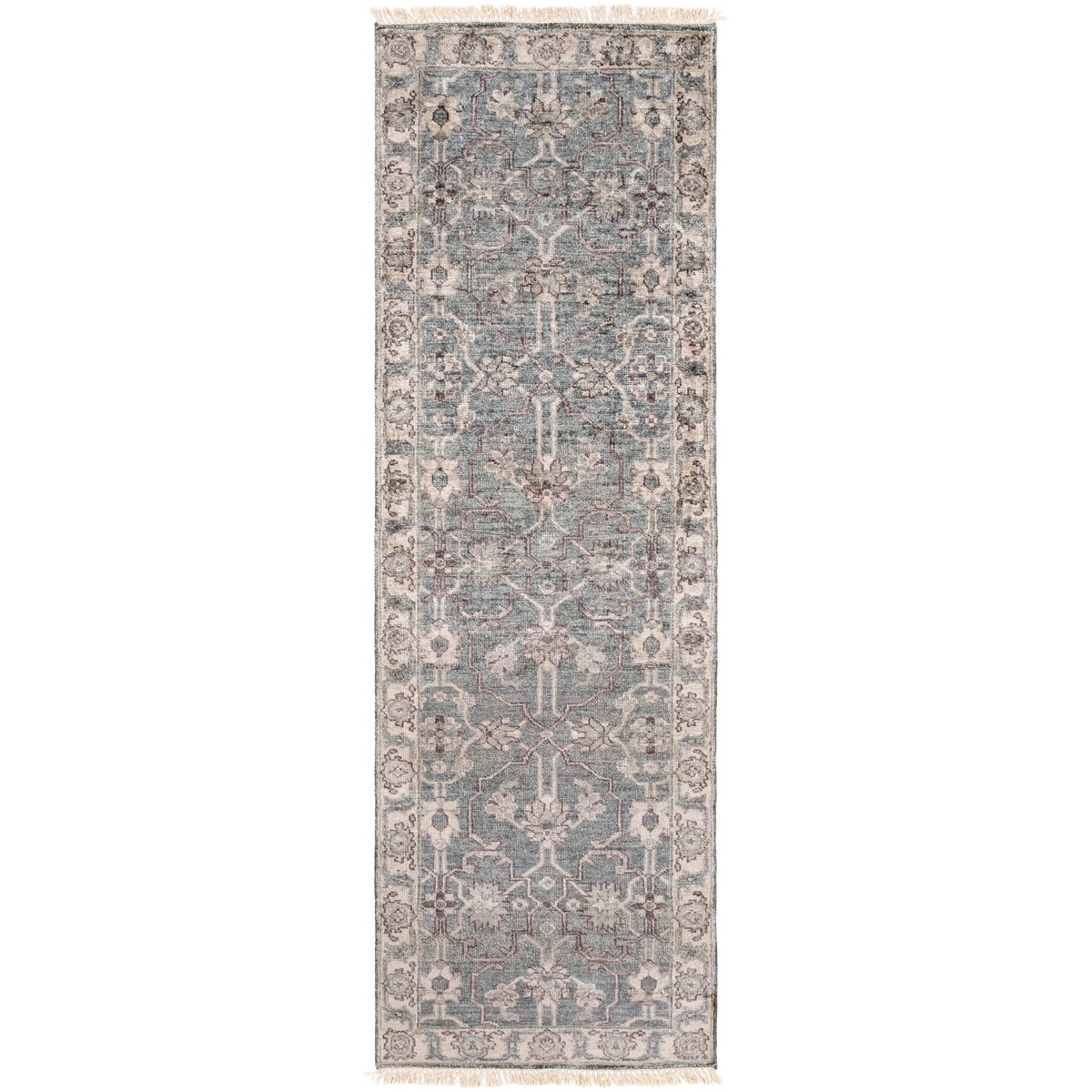 The Theodora Collection showcases traditional inspired designs that exemplify timeless styles of elegance comfort and sophistication. With their hand knotted construction these rugs provide a durability that can not be found in other handmade constructions and boasts the ability to be thoroughly cleaned as it contains no chemicals that react to water such as glue. Made with Viscose in India and has Low Pile. Spot Clean Only One Year Limited Warranty.