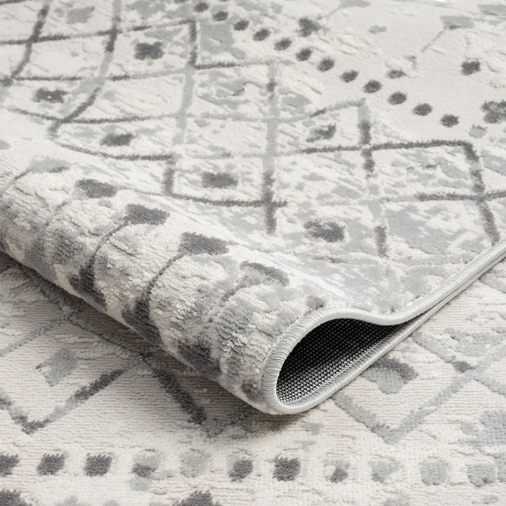 Hannah Moroccan Global Woven Area Rug Light Grey Cream