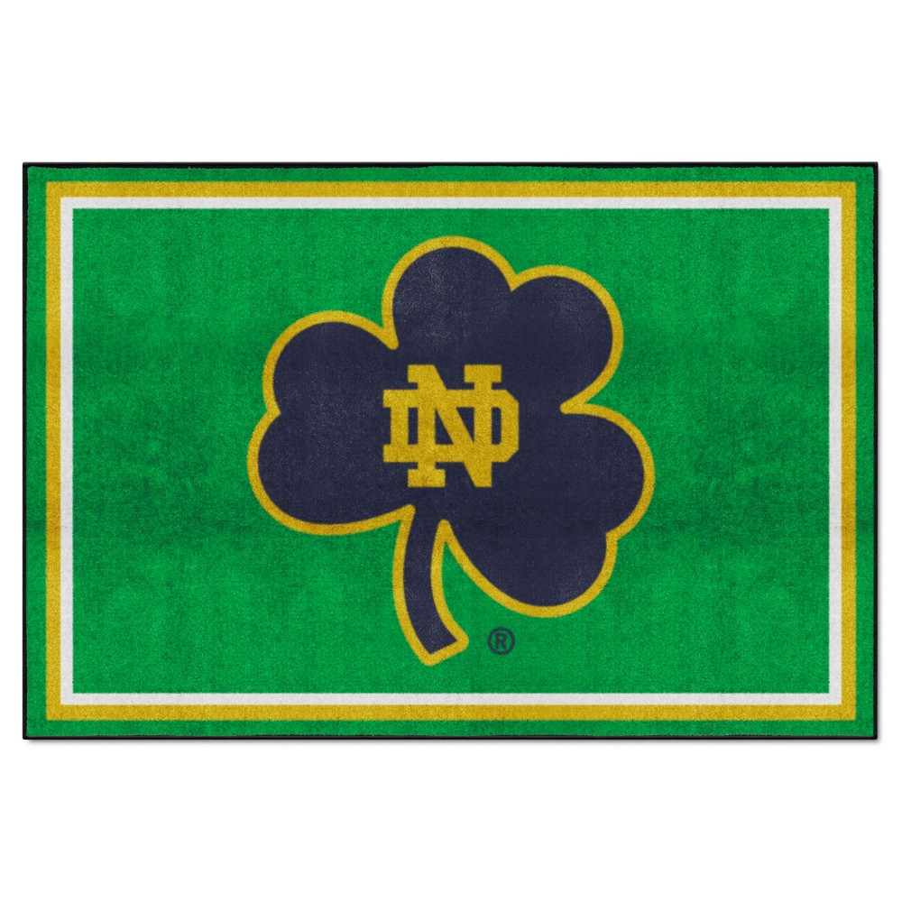 | Notre Dame Fighting Irish 5ft. x 8 ft. Plush Area Rug, Clover Logo 23.5 oz., 100% Nylon Face Latex backing for a durable and longer-lasting product Machine made in the USA Non-skid backing to ensure stability Vacuum regularly and spot clean Chromojet-printed in true team colors Notre Dame in Indiana |