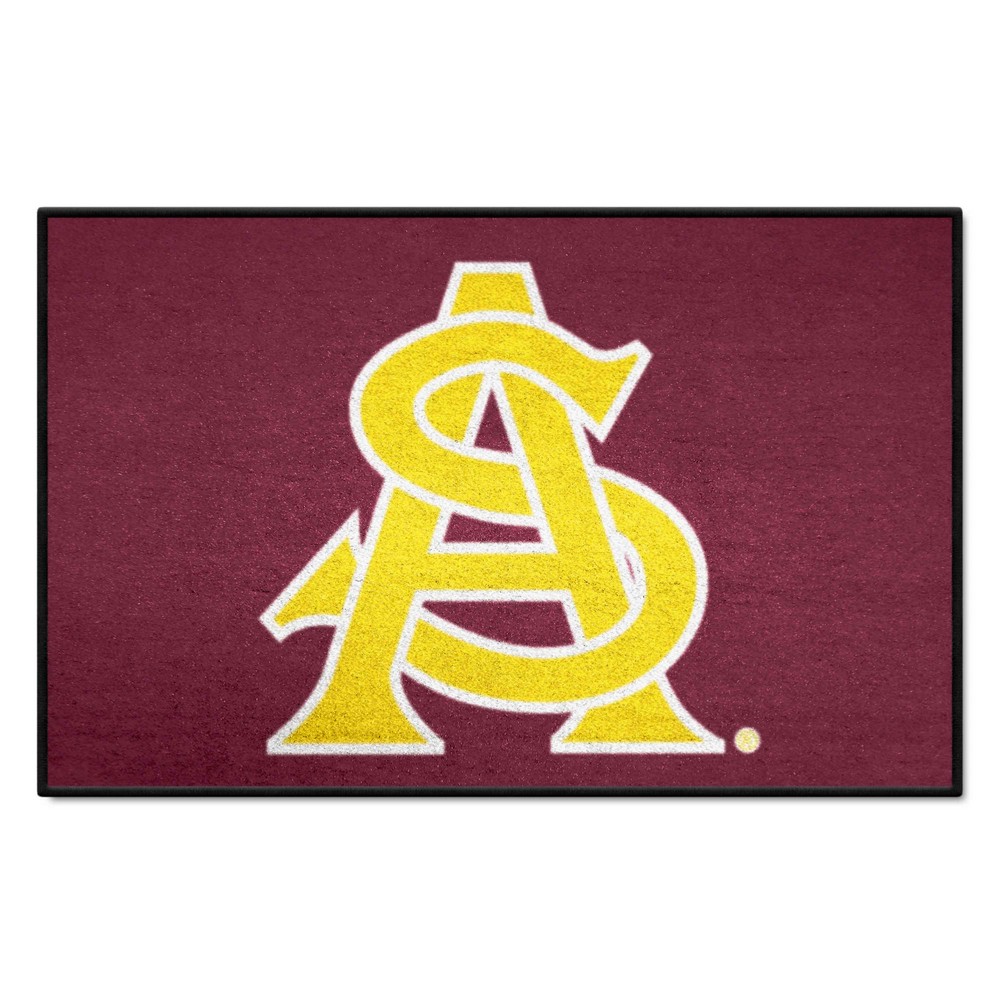 | Arizona State Sun Devils Starter Mat Accent Rug - 19in. x 30in. 9 Ounce, 100 % Nylon Face Recycled vinyl backing for a durable and longer-lasting product Machine made and tufted in the USA Non-skid backing with serged borders for added durability Machine washable; vacuum regularly and spot clean for any easy and quick clean Officially licensed and chromojet-printed in true team colors for vibrant, lasting color Arizona State University in Arizona |