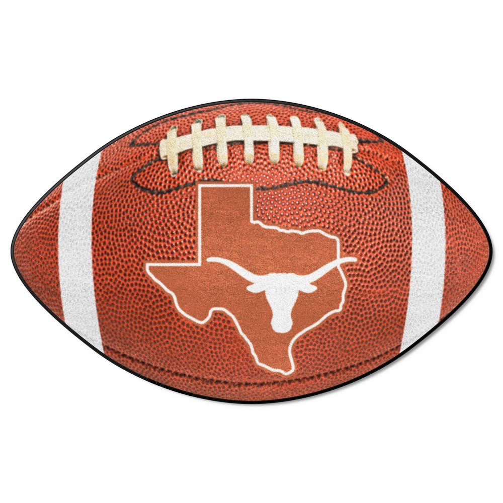 | Texas Longhorns Football Rug - 20.5in. x 32.5in. 9 Ounce, 100 % Nylon Face Recycled vinyl backing for a durable and longer-lasting product Machine made and tufted in the USA Non-skid backing with taped borders for added durability Machine washable; vacuum regularly and spot clean for any easy and quick clean Officially licensed and chromojet-printed in true team colors for vibrant, lasting color University of Texas in Texas |