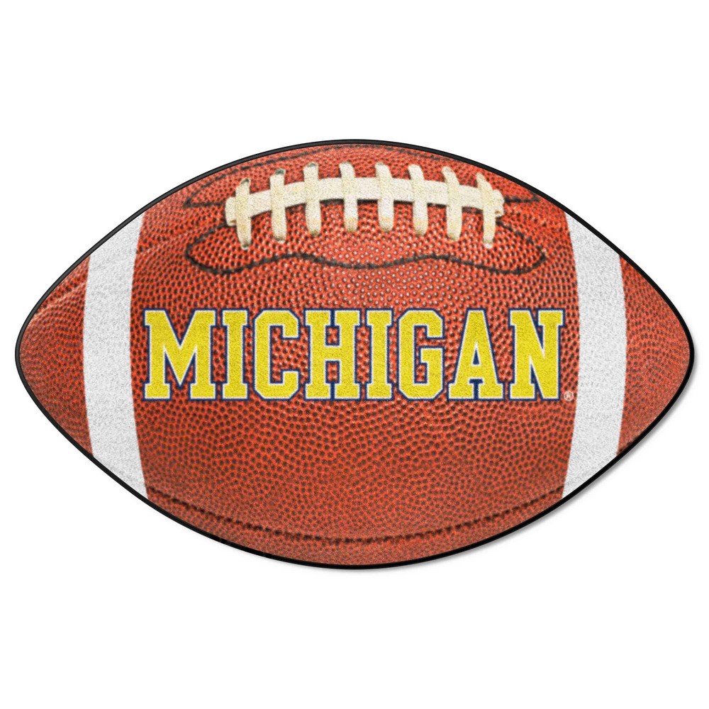 | Michigan Wolverines Football Rug - 20.5in. x 32.5in. 9 Ounce, 100 % Nylon Face Recycled vinyl backing for a durable and longer-lasting product Machine made and tufted in the USA Non-skid backing with taped borders for added durability Machine washable; vacuum regularly and spot clean for any easy and quick clean Officially licensed and chromojet-printed in true team colors for vibrant, lasting color University of Michigan in Michigan |
