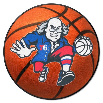 | Philadelphia 76ers Basketball Rug - 27in. Diameter 9 Ounce, 100 % Nylon Face Recycled vinyl backing for a durable and longer-lasting product Machine made and tufted in the USA Non-skid backing with taped borders for added durability Machine washable; vacuum regularly and spot clean for any easy and quick clean Officially licensed and chromojet-printed in true team colors for vibrant, lasting color NBA - Philadelphia 76ers in Pennsylvania NBA National Basketball Association |