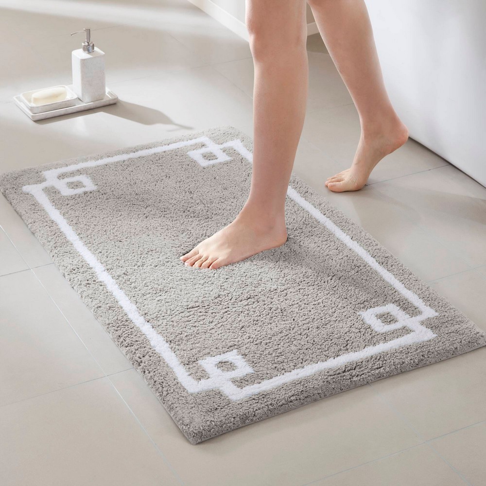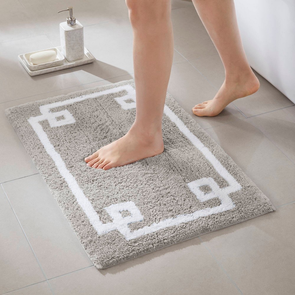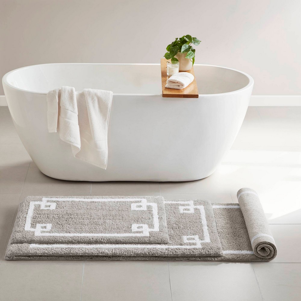 | Madison Park 24x72" 1 Rug: 24x72" 100% cotton tufted, 220gsm Transitional Modern Style Includes 1 Piece(s) Machine wash cold separately, on gentle/delicate cycle. Use mild detergent and non-chlorine bleach when needed. Tumble dry low, remove promptly. Some linting may occur due to nature of fabric. Do not iron. Do not dry clean. The Madison Park Evan Cotton Tufted Bath Rug provides the perfect balance of comfort and style to update your bathroom. This tufted bath rug features a contrasting white border on a soft colored ground creating a clean hotel look, while the plush medium pile weight provides pure soft comfort for your feet. The light latex coated back makes this bath rug skid resistance for better safety, while also keeping rug in place throughout the day. Machine washable for easier care, this cotton bath rug is also OEKO-TEX certified, meaning it does not contain any harmful substances or chemicals ensuring quality comfort and wellness. Bath rugs are sold separately in multiple sizes and colors, making it easy to complete any bathroom size and decor! |