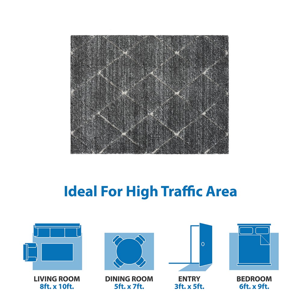| Madison Park 8x10' 1 Area Rug: 8'W x 10'L 100% polypropylene Transitional Modern Style Includes 1 Piece(s) Routine vacuuming is an important step in maintaining your area rug. It is recommended to have your area rug professionally cleaned every 1 – 2 years. Clean spots immediately with the help of a damp cloth, do not rub. In case of persistent spots, professional cleaning is recommended Bring a soft and elegant touch to your home decor with the Madison Park Sophie Talas Shag Area Rug. This machine woven, plush rug features a super soft high pile with a grey and cream diamond trellis pattern for a modern and stylish update. Diamond pattern face detailing adds rich texture and an artisan touch, while a sprayed transparent latex reverse helps prevent the rug from sliding making it well suited for high traffic areas. Easy to clean with a brushless vacuum or by spot cleaning, while also stain and fade resistant - this shag area rug is the perfect update for a cozy yet fresh update. This shag area rug is OEKO-TEX certified, meaning it does not contain any harmful substances or chemicals to ensure quality comfort and wellness. Available in multiple colors and sizes, this rug is perfect for any living room, family room, and or other room decor. A rug pad is highly recommended to keep the rug more secured in place; Rug pad sold separately. |