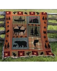 | Search no more for lodge decor! A rustic color palette is complemented by a collage of wildlife imagery. This 100% cotton tapestry throw creates an ideal ambiance for mountain homes, lodges and cabins. |