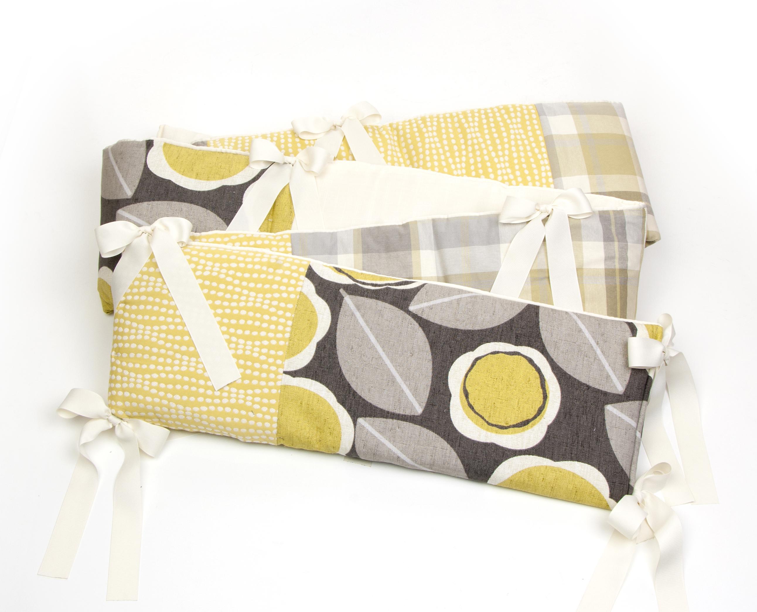 | Brea Baby Bedding is a fantastic, modern unisex baby bedding set that can work for both a boy or a girl. A contemporary floral and leaf design in eye catching yellow and muted gray create a unique, upbeat nursery. |