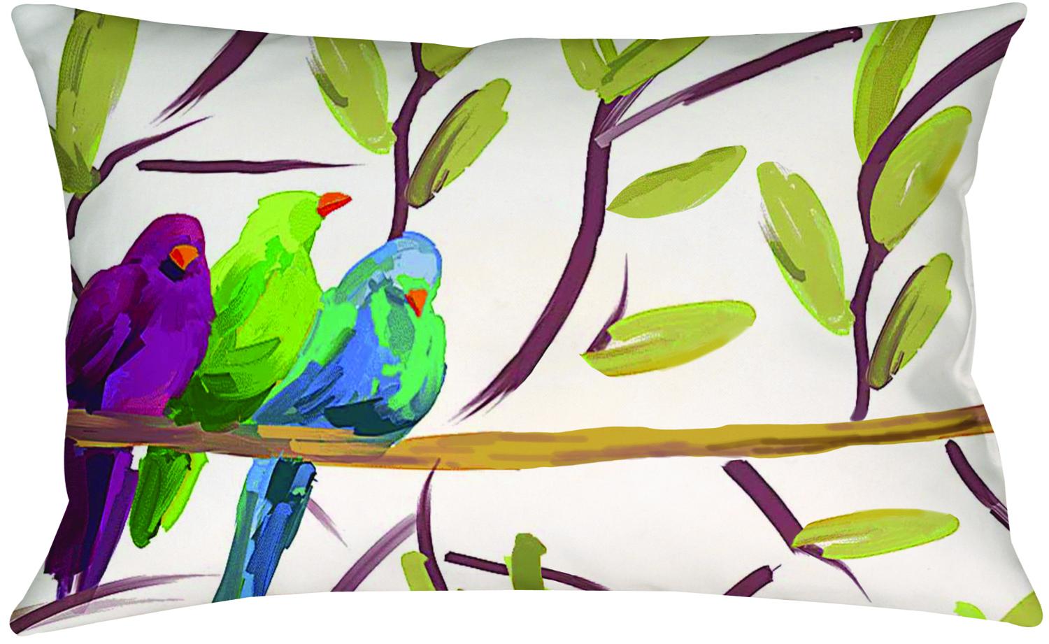| Colorful Songbird Pillow Climaweave™ is a collection of indoor/outdoor products constructed to withstand the elements and time. Climaweave™ pillows are beautifully designed and brightly colored for your patio or garden. Pillows are filled with recycled poly fiberfill with a fabric that is designed to be weather resistant, moisture resistant and fade resistant for many seasons of enjoyment. The fabric is treated before and after the digital printing process to achieve color brightness and durability. So go ahead and put these items around your pool, patio, garden gates, sofa, bed or anywhere you want to add an element of decor. |