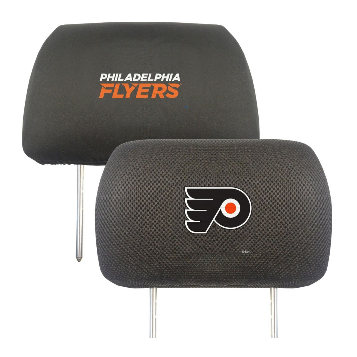 | Philadelphia Flyers Embroidered Head Rest Cover Set - 2 Pieces Made of comfortable material - mesh on one side and soft polyester on the other Logo is embroidered on one side and the team name is embroidered on the other Elastic band ensures a snug fit, so instillation is a breeze Machine washable, just let them air dry Sold in pairs Embroidered logo will not peel or fade NHL - Philadelphia Flyers in Pennsylvania NHL National Hockey League |