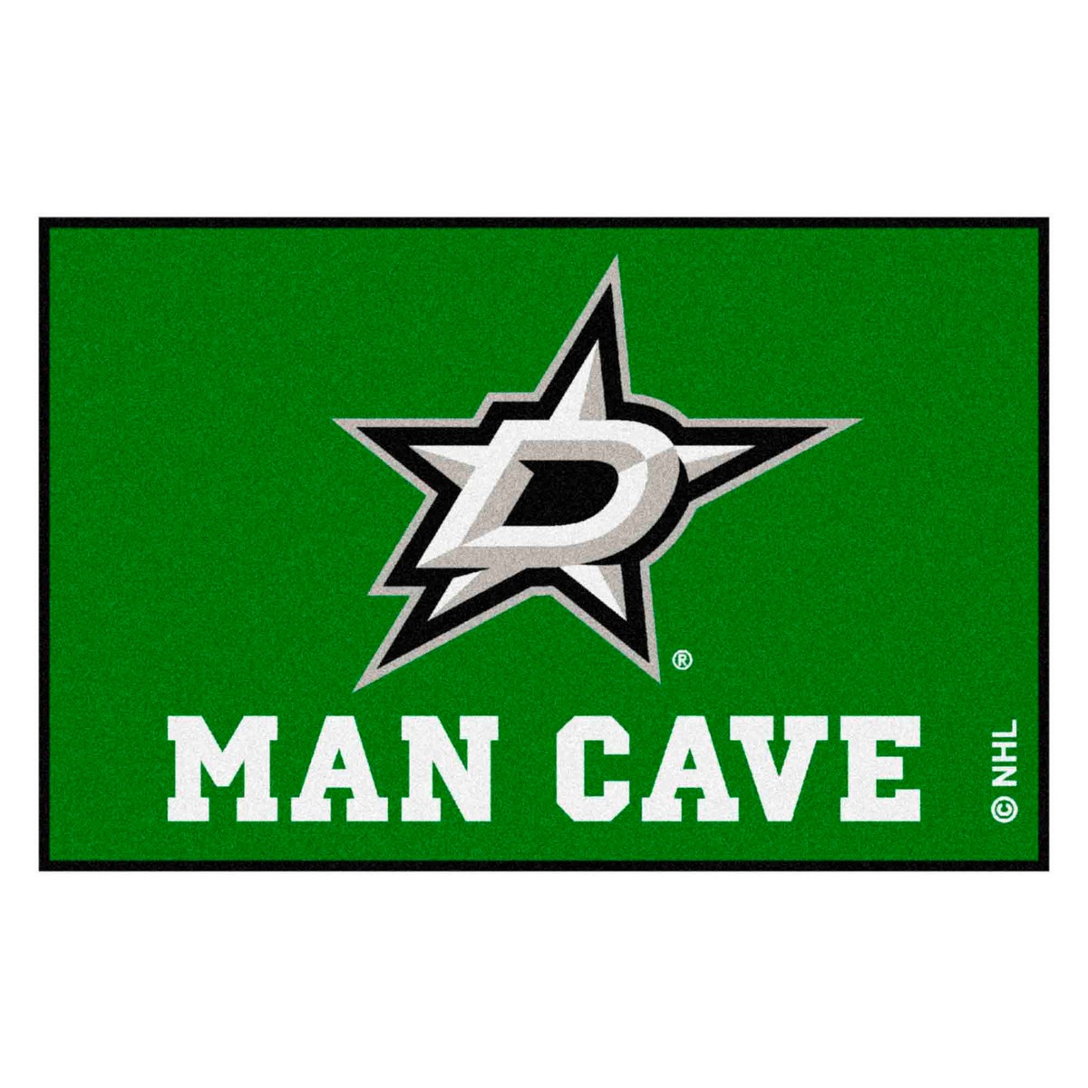 | Dallas Stars Man Cave Starter Mat Accent Rug - 19in. x 30in. 9 Ounce, 100 % Nylon Face Recycled vinyl backing for a durable and longer-lasting product Machine made and tufted in the USA Non-skid backing with serged borders for added durability Machine washable; vacuum regularly and spot clean for any easy and quick clean Officially licensed and chromojet-printed in true team colors for vibrant, lasting color NHL - Dallas Stars in Texas NHL National Hockey League |
