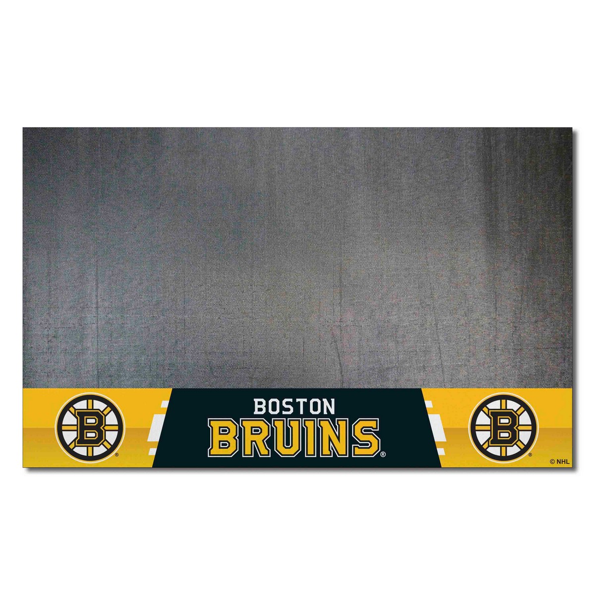 | Boston Bruins Vinyl Grill Mat - 26in. x 42in. Made of 100% vinyl Universal size - fits under most grills Prevents spills from soaking in and staining Oil, flame, and UV resistant Non-skid surface keeps grill in place Easily cleaned with a water hose NHL - Boston Bruins in Massachusetts NHL National Hockey League |
