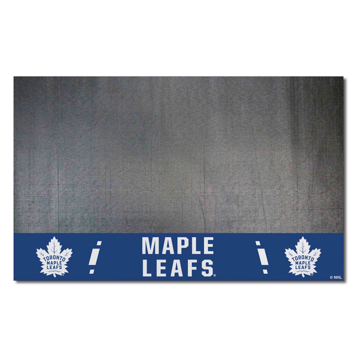 | Toronto Maple Leafs Vinyl Grill Mat - 26in. x 42in. Made of 100% vinyl Universal size - fits under most grills Prevents spills from soaking in and staining Oil, flame, and UV resistant Non-skid surface keeps grill in place Easily cleaned with a water hose NHL - Toronto Maple Leafs in Ontario NHL National Hockey League |