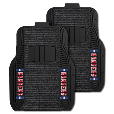 | New York Rangers 2 Piece Deluxe Car Mat Set Vinyl & dual ribbed charcoal carpet construction Dirt catching dual ribbed carpet Trimmable edges for a custom fit Nibbed backing keeps mats in place while driving for added safety Molded logos in true team colors Deep pockets catch and hold dirt and water NHL - New York Rangers in New York WARNING: This product can expose you to chemicals including, DINP, which is known to the State of California to casue cancer. For more information, go to www.P65Warnings.ca.gov NHL National Hockey League |