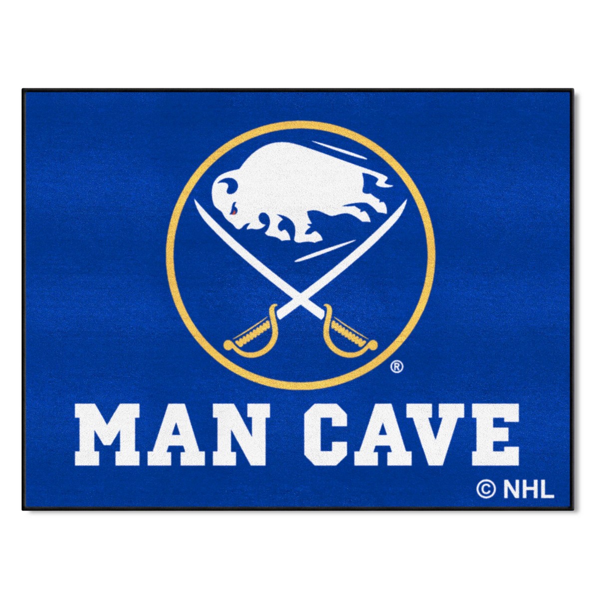 | Buffalo Sabres Man Cave All-Star Rug - 34 in. x 42.5 in. 9 Ounce, 100 % Nylon Face Recycled vinyl backing for a durable and longer-lasting product Machine made and tufted in the USA Non-skid backing with serged borders for added durability Machine washable; vacuum regularly and spot clean for any easy and quick clean Officially licensed and chromojet-printed in true team colors for vibrant, lasting color NHL - Buffalo Sabres in New York NHL National Hockey League |