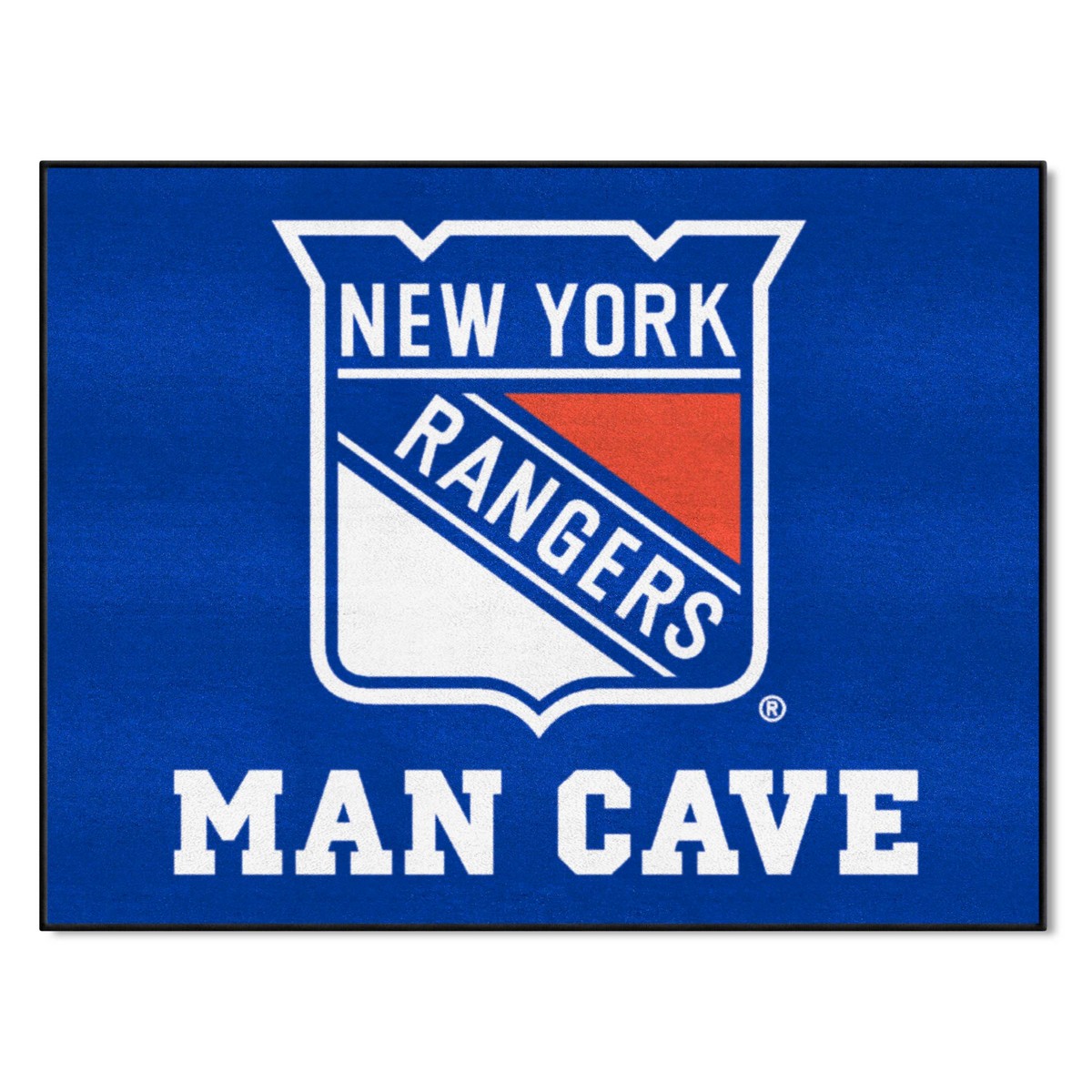 | New York Rangers Man Cave All-Star Rug - 34 in. x 42.5 in. 9 Ounce, 100 % Nylon Face Recycled vinyl backing for a durable and longer-lasting product Machine made and tufted in the USA Non-skid backing with serged borders for added durability Machine washable; vacuum regularly and spot clean for any easy and quick clean Officially licensed and chromojet-printed in true team colors for vibrant, lasting color NHL - New York Rangers in New York NHL National Hockey League |
