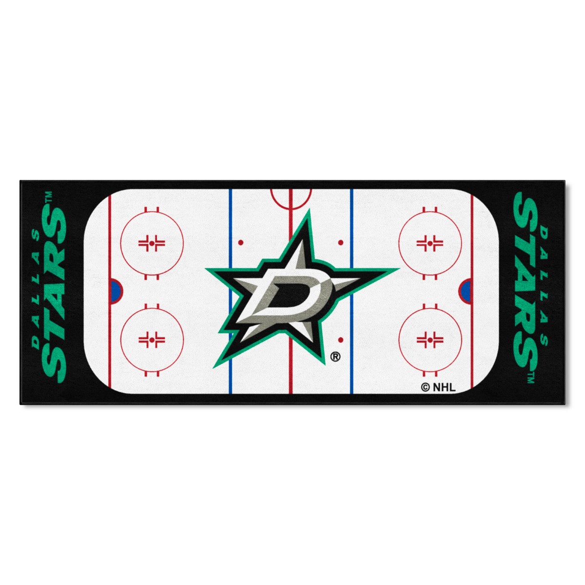 | Dallas Stars Rink Runner - 30in. x 72in. 9 Ounce, 100 % Nylon Face Recycled vinyl backing for a durable and longer-lasting product Machine made and tufted in the USA Non-skid backing with serged borders for added durability Machine washable; vacuum regularly and spot clean for any easy and quick clean Officially licensed and chromojet-printed in true team colors for vibrant, lasting color NHL - Dallas Stars in Texas NHL National Hockey League |