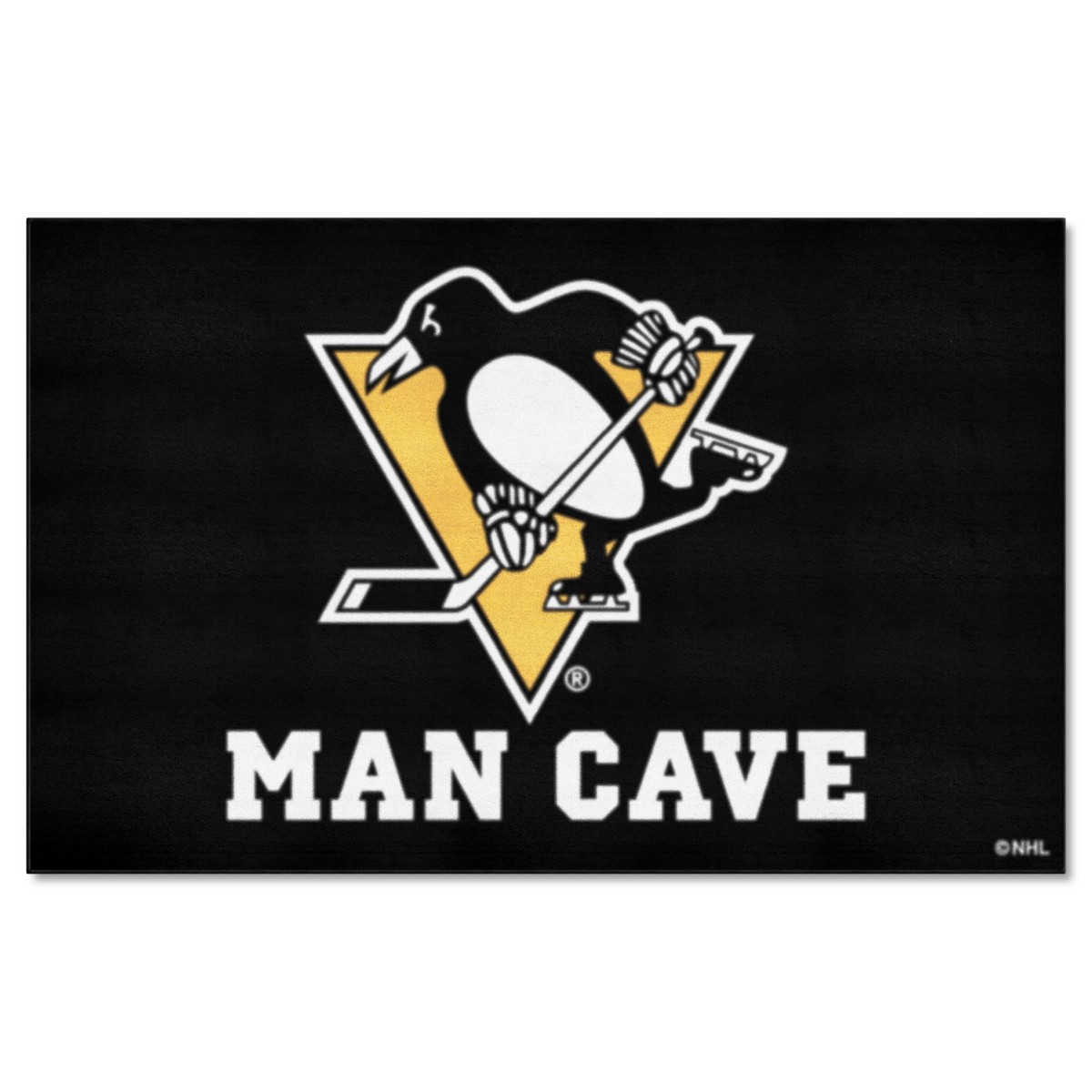 | Pittsburgh Penguins Man Cave Ulti-Mat Rug - 5ft. x 8ft. 9 Ounce, 100 % Nylon Face Recycled vinyl backing for a durable and longer-lasting product Machine made and tufted in the USA Non-skid backing with serged borders for added durability Machine washable; vacuum regularly and spot clean for any easy and quick clean Officially licensed and chromojet-printed in true team colors for vibrant, lasting color NHL - Pittsburgh Penguins in Pennsylvania NHL National Hockey League |