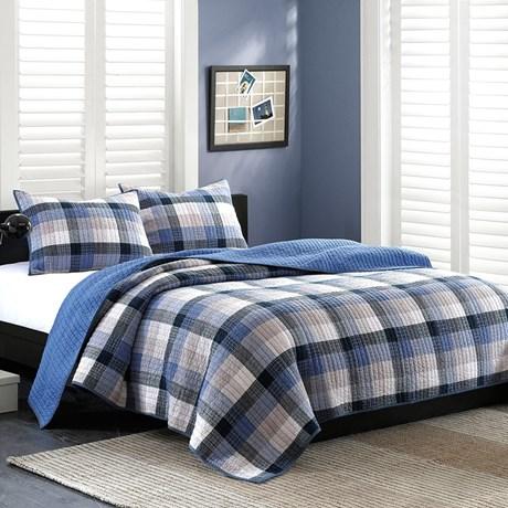 | 1 Coverlet 1 Sham Blue and Khaki Plaid Ink+Ivy |