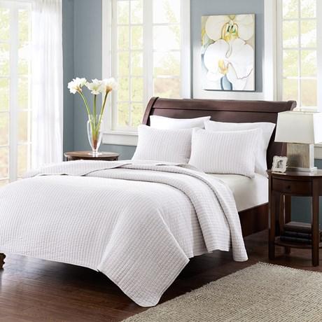 | 1 Coverlet 2 Shams Machine washable microfiber is super soft with pick stitching stripes. King |