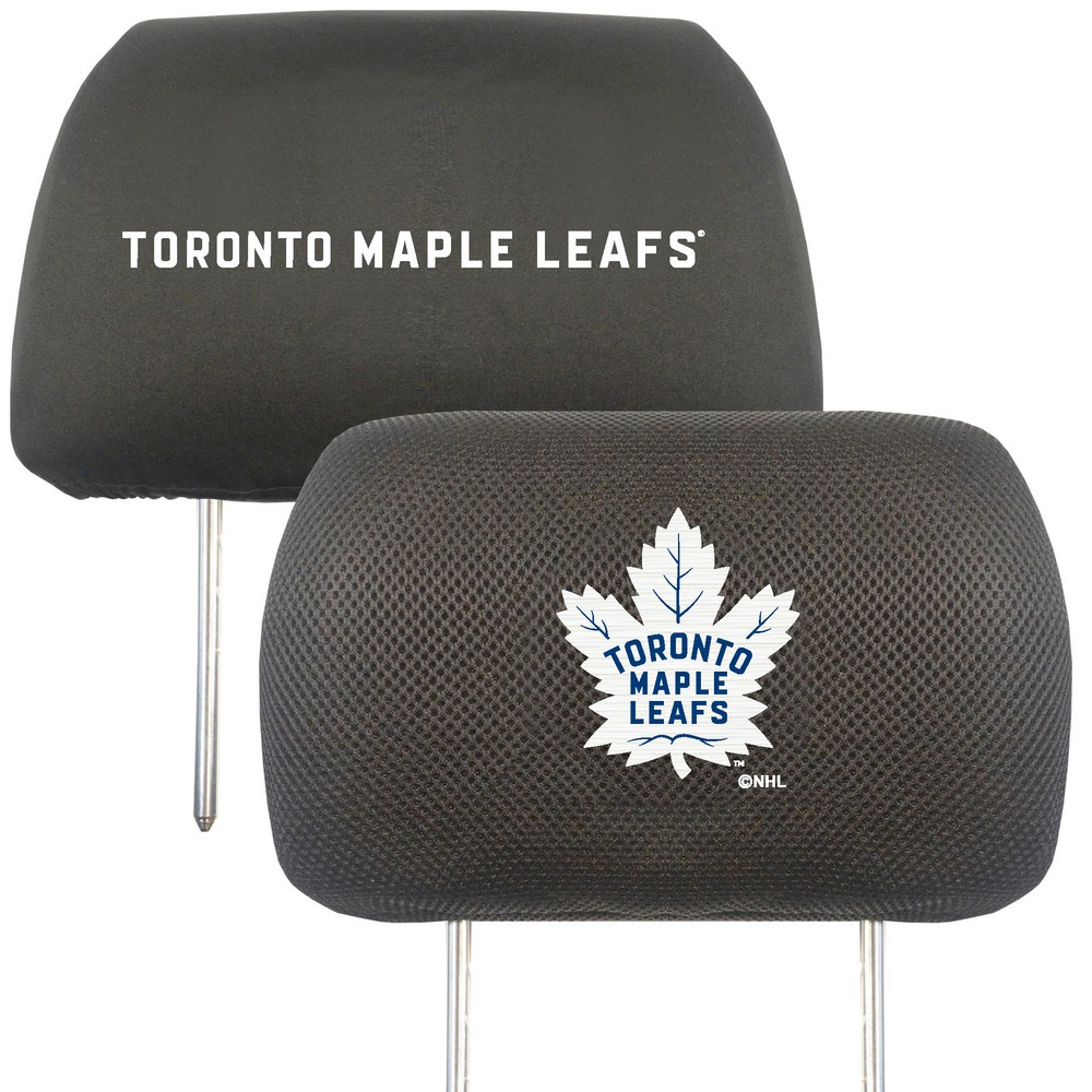 | Toronto Maple Leafs Embroidered Head Rest Cover Set - 2 Pieces Made of comfortable material - mesh on one side and soft polyester on the other Logo is embroidered on one side and the team name is embroidered on the other Elastic band ensures a snug fit, so instillation is a breeze Machine washable, just let them air dry Sold in pairs Embroidered logo will not peel or fade NHL - Toronto Maple Leafs in Ontario NHL National Hockey League |