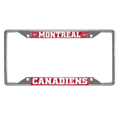 | Montreal Canadiens Chrome Metal License Plate Frame, 6.25in x 12.25in Made of chrome metal with a durable finish that resists the elements Team logo is domed and features vibrant colors that catch the eye 4 pre-drilled holes ensure a safe and secure fit, plus no rattling noises while driving Slimline design helps keep registration tag visible Fits most standard plates, measures 6.25" x 12.25" Screws not included NHL - Montreal Canadiens in Quebec NHL National Hockey League |