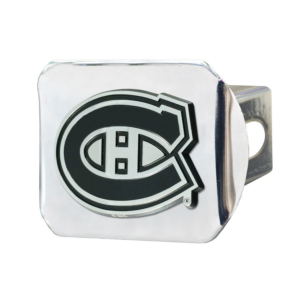 | Montreal Canadiens Chrome Metal Hitch Cover with Chrome Metal 3D Emblem Completely wraps your hitch to keep all debris out Fits all 2 in. Class III hitches for a secure installation Made of chromed metal for a sleek design 3-D molded design to clearly outline the team logo Attaches without use of tools for an easy on and off; pin is not included Keeps your hitch clear of debris NHL - Montreal Canadiens in Quebec NHL National Hockey League |