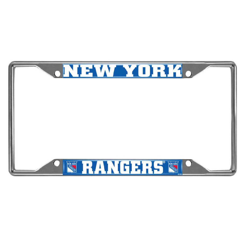 | New York Rangers Chrome Metal License Plate Frame, 6.25in x 12.25in Made of chrome metal with a durable finish that resists the elements Team logo is domed and features vibrant colors that catch the eye 4 pre-drilled holes ensure a safe and secure fit, plus no rattling noises while driving Slimline design helps keep registration tag visible Fits most standard plates, measures 6.25" x 12.25" Screws not included NHL - New York Rangers in New York NHL National Hockey League |