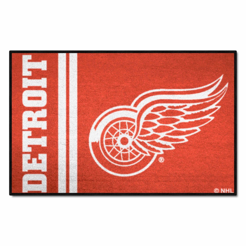 | Detroit Red Wings Starter Mat Accent Rug - 19in. x 30in., Uniform Design 9 Ounce, 100 % Nylon Face Recycled vinyl backing for a durable and longer-lasting product Machine made and tufted in the USA Non-skid backing with serged borders for added durability Machine washable; vacuum regularly and spot clean for any easy and quick clean Officially licensed and chromojet-printed in true team colors for vibrant, lasting color NHL - Detroit Red Wings in Michigan NHL National Hockey League |