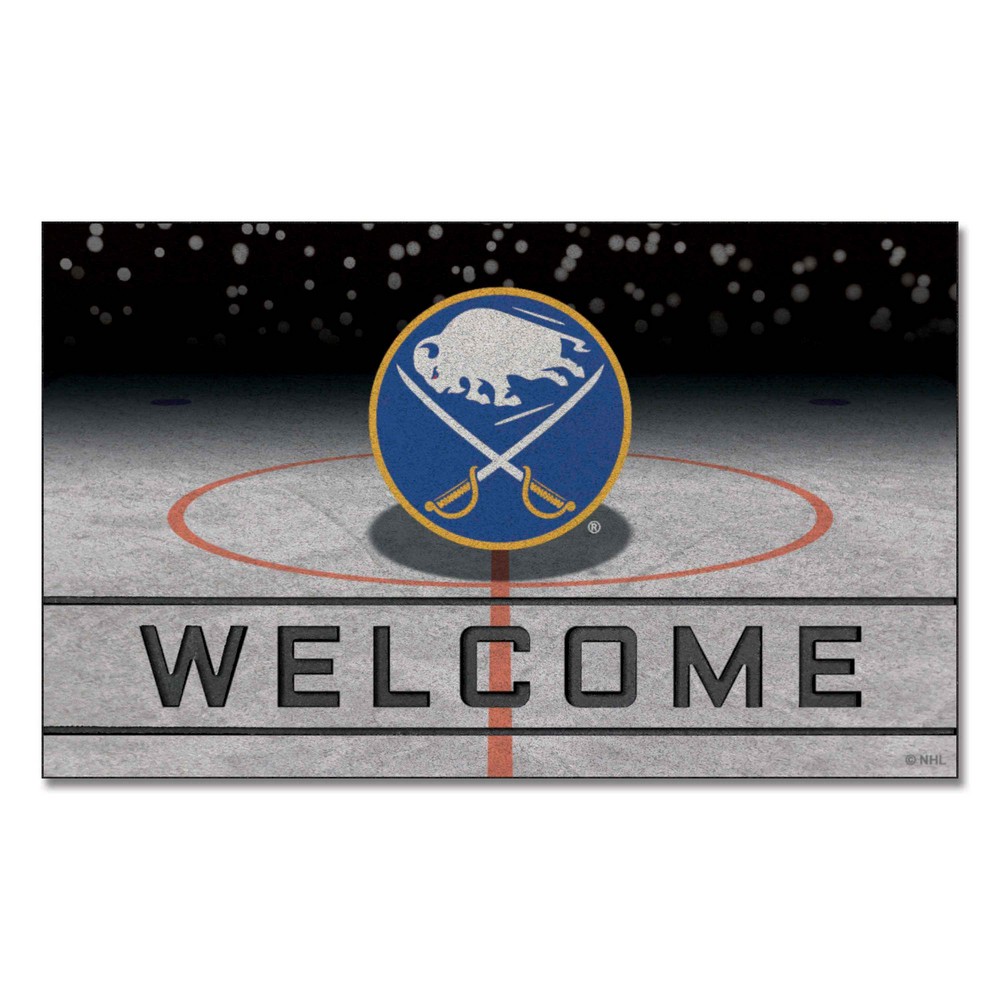 | Buffalo Sabres Rubber Door Mat - 18in. x 30in. Heavy Duty rubber construction is durable for all weather True team colors Easily cleaned with broom or hose Non-skid rubber backing 3D Molded welcome stripe Flocked fiber surface NHL - Buffalo Sabres in New York NHL National Hockey League |