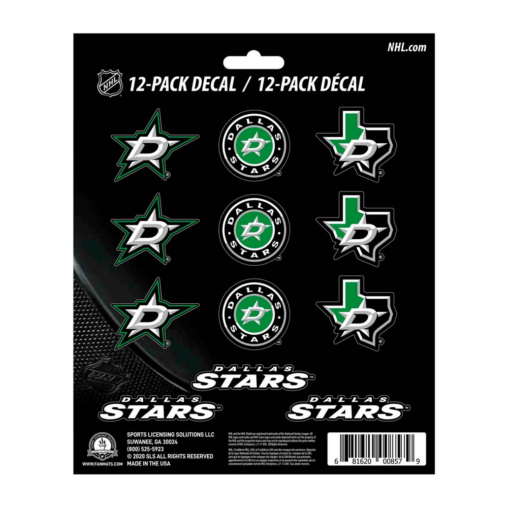 | Dallas Stars 12 Count Mini Decal Sticker Pack Includes12 small size decals on a 5in x 6in sheet Adhesive decals are die-cut to shape Printed on premium vinyl material UV resistant lamination for outstanding durability Great for cars, laptops, coolers and other hard surfaces Approximately 5in x 6.25in NHL - Dallas Stars in Texas NHL National Hockey League |