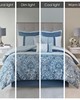 | 510 Design Queen 1 Comforter: 90"W x 90"L 2 Standard Shams: 20"W x 26"L (2) 1 Bedskirt: 60"W x 80"L + 15"D 2 Decorative Pillows: 12"W x 18"L/18"W x 18"L 2 Euro Shams: 26"W x 26"L + 2"D(2) Comforter and shams: 100% polyester microfiber face and reverse, print details pieced with quilting, 6 oz/sq yard polyester filling Bedskirt: 100% polyester microfiber drop, non-woven platform Pillows and Euro shams: 100% polyester microfiber, 100% polyester pillow filling Transitional Style Includes 8 Piece(s) Machine Washable Spot Clean Pillows Update your bedroom with the refined elegance of 510 Design’s Shawnee 8 Piece Comforter Set. Showcasing a pieced design with diamond quilting details, this ultra-soft microfiber comforter flaunts a partial damask print in blue and white hues to create a luxurious look. A solid blue reverse complements the top of the bed, while the matching shams reiterate the design of the comforter for a chic coordinated ensemble. The navy Euro shams feature blue flanges that add a charming touch and 2 embroidered decorative pillows provide a lavish accent. Completing the comforter set is a solid navy bed skirt that offers a clean finish, giving your bedroom a beautiful allure. Hypoallergenic polyester filling in the comforter and pillows contains no allergens and is treated to be dustproof. Machine washable for easy care, this traditional comforter set may come in rolled or compressed packing and will need to be fluffed up. Use a steam iron to help remove wrinkles easier. |