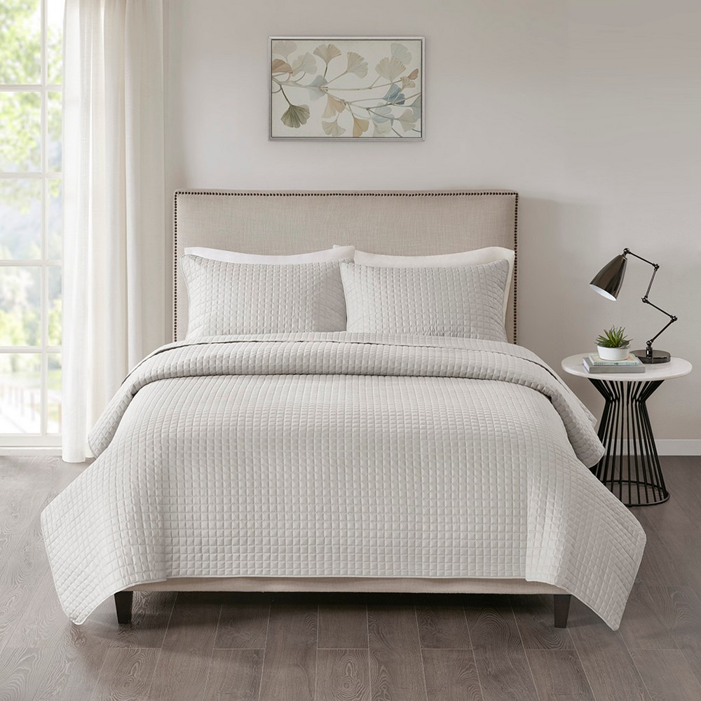 Otto 3 Piece Reversible Quilt Set Grey Twin Full Queen King Full Queen