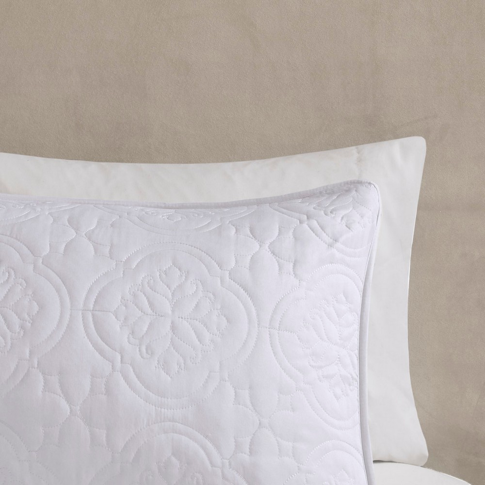 | 510 Design Full/Queen 1 Bedspread: 102"W x 118"L 2 Standard Shams: 20"W x 26"L (2) Bedspread/Sham: Solid soft microfiber face and reverse, Fill: 100% polyester fill Casual Style Includes 3 Piece(s) Machine washable This 3 Piece reversible bedspread set offers a simple and stylish addition to your bedroom decor. A quilted medallion technique is displayed on the white bedspread and shams, adding dimension and charm to the top of the bed. Unlike traditional coverlets or quilts, this bedspread is oversized to drape better and features 100% hypoallergenic polyester filling. Made from ultra-soft microfiber, this oversized cover up is machine washable for easy care and adds a chic transitional allure to your bedroom. |