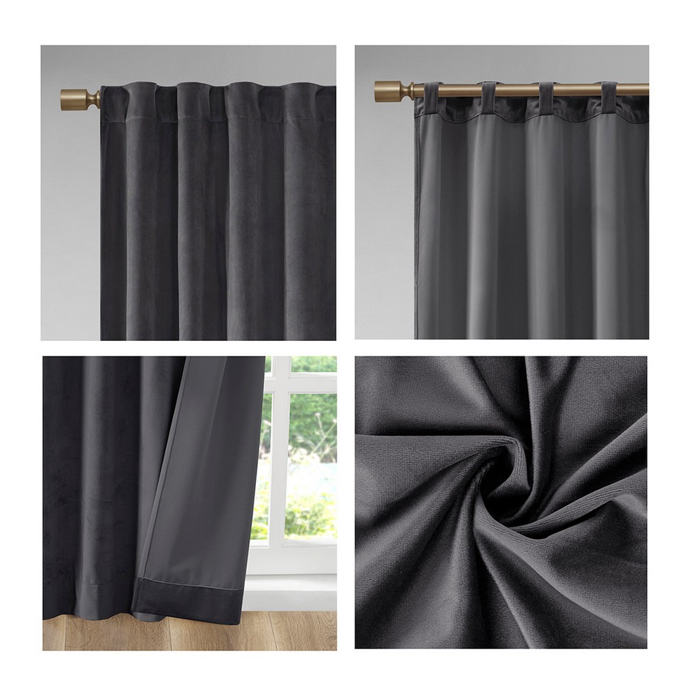 Colt Room Darkening Metallic Printed Poly Velvet Rod Pocket Back Tab Window Panel Pair Charcoal